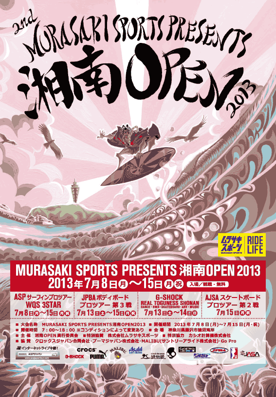 鵠沼海浜スケートパークと、目の前の海で開催された湘南オープン2013として開催。